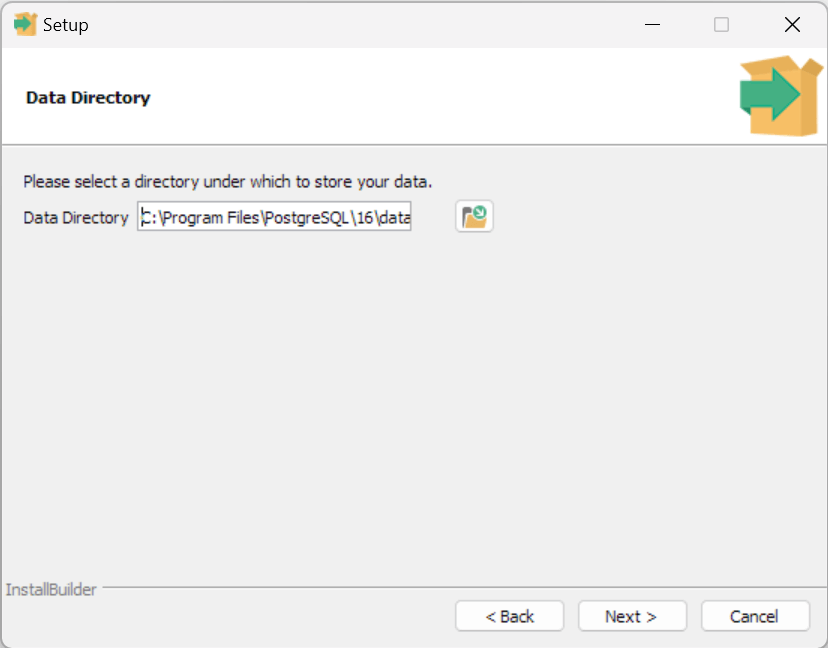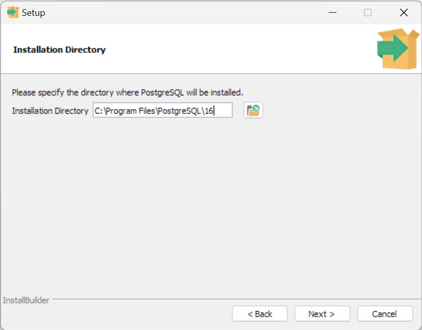 Step 3\. Specify the installation directory by either choosing your preferred location or using the default folder suggested by the PostgreSQL installer and click the Next button
