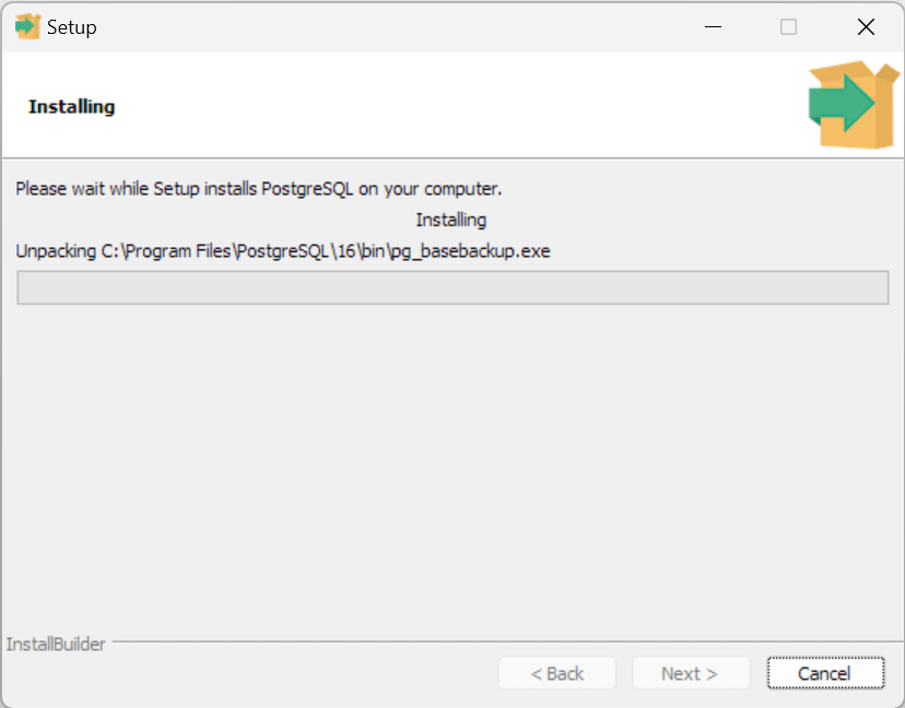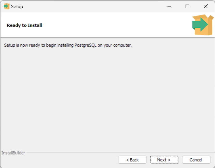 Now, you are ready to install PostgreSQL on your computer. Click the **Next** button to initiate PostgreSQL installation.